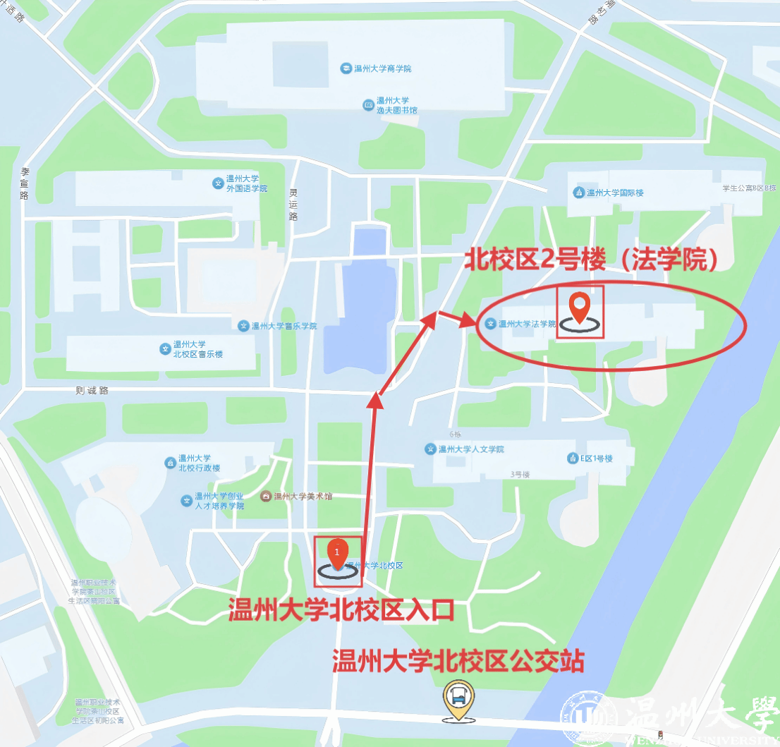 考试地点:浙江省温州市高教园区温州大学北校区2号楼(高德地图搜索“温州大学法学院”),请由温州大学北校区正门(近温州大学北校区公交站)进入,并根据引导抵达对应考场(考场安排将通过短信的形式通知各位考生,请各位考生保持通讯畅通)。